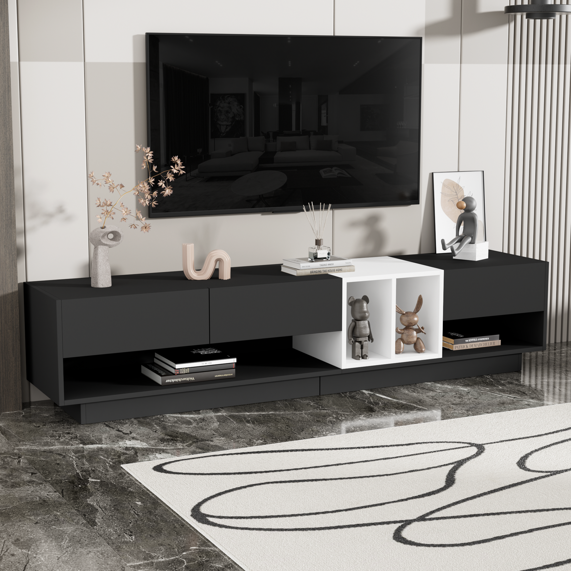 ON-TREND Black Two-Tone TV Stand – Sleek Media Console for TVs up to 80″ with Versatile Storage Compartments for Living Room